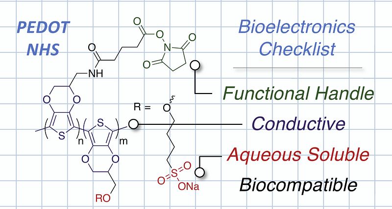 Tropp, Joshua, et al. “Versatile Poly(3,4-Ethylenedioxythiophene) Polyelectrolytes for Bioelectronics by Incorporation of an Activated Ester.” Chem. Mater., vol. 35, 2022, pp. 41–50, doi:10.1021/acs.chemmater.2c02315.